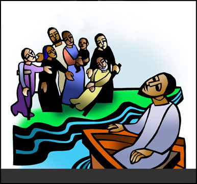 16 When evening came, his disciples went down to the lake, 17 where they got into a boat and set off across the lake for Capernaum. By now it was dark, and Jesus had not yet joined them. 18 A strong wind was blowing and the waters grew rough. 19 When they had rowed about three or four miles, they saw Jesus approaching the boat, walking on the water; and they were frightened. 20 But he said to them, “It is I; don’t be afraid.” 21 Then they were willing to take him into the boat, and immediately the boat reached the shore where they were heading.